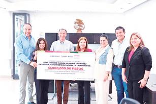 Refrendando el compromi so de apoyar la educación de los jóvenes acuñenses, la fun dación Don Antonio y Doña Herminia Gutiérrez entregó al municipio un cheque por la cantidad de un millón de pesos para impulsar el programa de becas ‘Porque quiero ser mejor’.