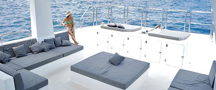 Cetáceo ofrece cómodos sillones tipo lounge, áreas de sol y sombra, equipos para hacer esnórquel, dos kayaks y dos paddle boards También tiene dos