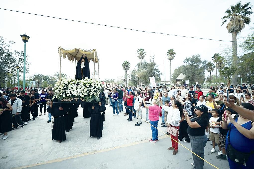 dinación con los municipios de Francisco I. Madero, Matamoros, Parras, Saltillo, San Pedro y Torreón, ofrecieron transporte gratuito en autobuses para facilitar la llegada de los asistentes, garantizando su comodidad y seguridad durante el recorrido. La Procesión del Silencio es una de las tradiciones más significativas de la Semana Santa. Cientos de personas recorren 3 kilómetros en total silencio, acompañadas únicamente por el solemne sonido de tambores y cornetas. Durante la caminata, se portan imágenes de arte sacro de gran valor histórico, como la de Nuestra Señora de la Soledad, quien protagoniza este acto de profunda reflexión y espiritualidad. “Las tradiciones son el alma