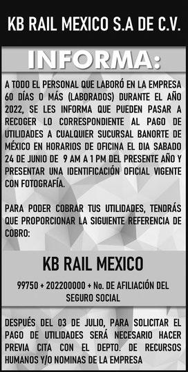 Lunes 19 de junio del 2023 | Año XLIX | Número 17,212 | 4 secciones | www.zocalo.com.mx 10 PESOS @PeriodicoZocalo