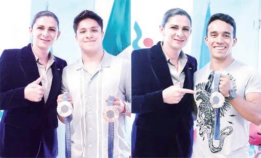 z Osmar Olvera y Juan Celaya se reunieron con la titular de la Conade, Ana Gabriela Guevara, para agradecer el apoyo en los últimos años que dio como resultado dos medallas olímpicas en París 2024.