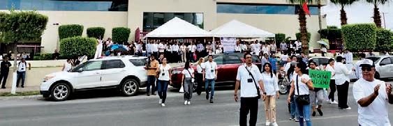 En Torreón z Unos mil trabajadores pertenecientes al Poder Judicial de la Federación, con sede en Torreón, se unieron al paro parcial nacional, provocando un caos vial sobre el bulevar Independencia, donde se plantaron desde las 10 de la mañana. z Además de entonar el Himno Nacional Mexicano, los cientos de trabajadores mostraron en sus pancartas leyendas como “Independencia para el Poder Judicial”, “Si México se informa, no pasa la reforma”, entre otras.