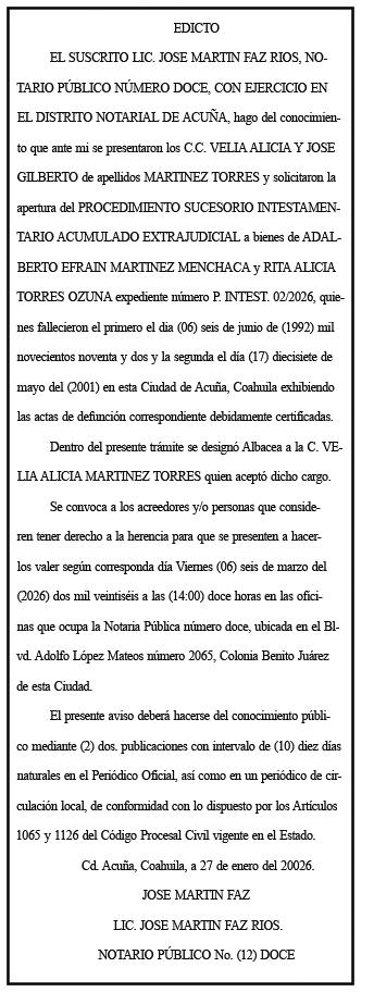 “Hoy realizamos una importante junta de Cabildo, es la primera del mes de febrero, la cual nos autoriza lo que es los incentivos para los médicos especialistas del Draft 2026 que se realizará en la Ciudad de México y que año con año pues se ha venido aprobando y con eso nos ha permitido cumplir con las plazas que hay todavía disponibles aquí en Acuña”, precisó el secretario del Ayuntamiento, Héctor Alberto de Luna Sánchez.