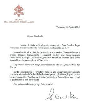 2. Son convocados z El Vaticano envía, como ya lo hizo ayer, una carta oficial a los cardenales de todo el mundo para convocarlos a las congregaciones generales, paso previo