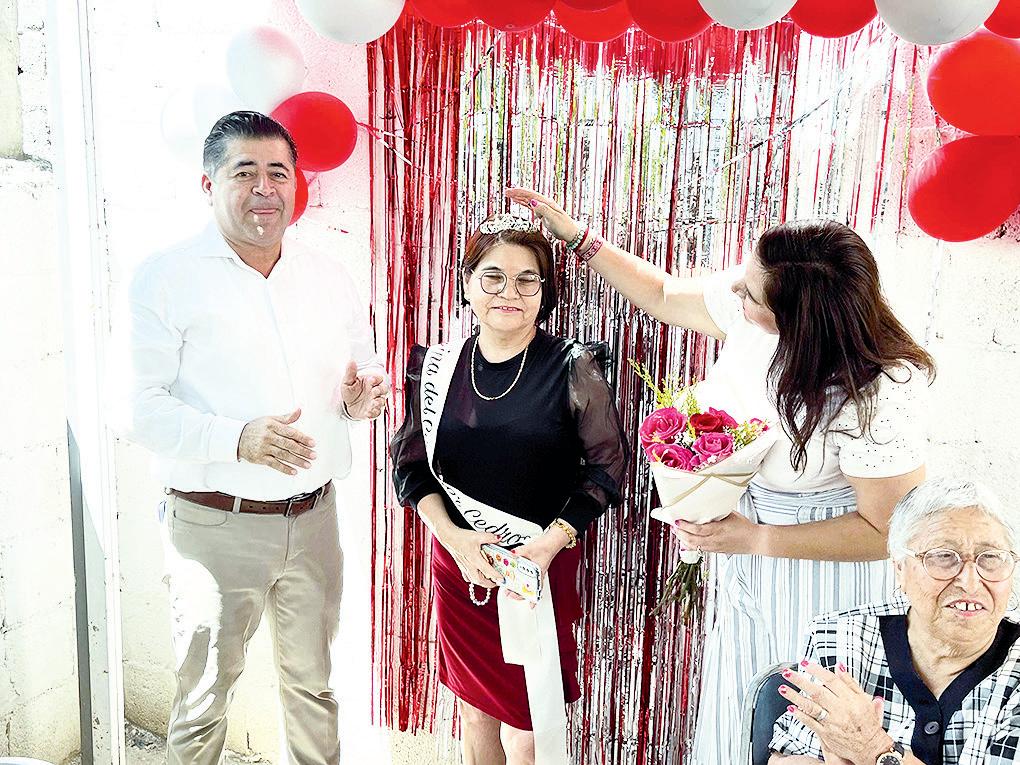 La señora Carolina Ortiz García fue elegida como reina del comedor comunitario de Cedros, siendo coronada por parte de Armando Reyes, titular del DIF estatal en Acuña, y Brenda Martínez Reyes, titular de la fundación Mi Pasión es Ayudar.