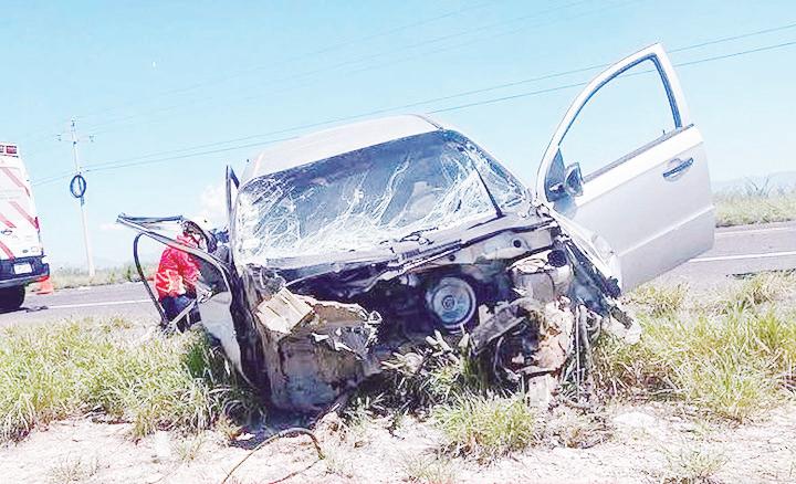 de la carretera federal Monclova-Saltillo, un neumático de su unidad estalló, provocando que perdiera control del volante, por lo que su vehículo Chevrolet Aveo invadió los carriles contrarios y se estrelló contra un tráiler con doble remolque. El fuerte impacto ocasionó que una mujer de aproxima damente 45 años que viaja ba en el asiento trasero, salie ra proyectada de la unidad, quedando así sin vida fuera del vehículo.