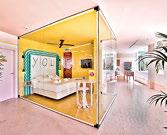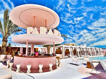Para aquellos que buscan sumergirse por completo en el mundo rosa de esta muñeca, pueden hospedarse en Paradiso Ibiza Art Hotel Este alojamiento sólo para adultos, sobresale en el horizonte de la costa oeste de Ibiza y hace un guiño a la Miami kitsch de los años 70 con suelos de baldosas cromáticas, espejos de bordes brillantes e iluminación neón. El sitio se antoja ideal para darse un chapuzón en la alberca –color rosa pastel– y disfrutar de un trago coqueto en su bar. El hotel es, incluso, el hogar de una gale-