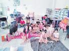 z La pequeña con una pequeña caja de dulces que tiene para su venta posa dentro de una de las cajas de Barbie dispuestas en el marco del estreno de la cinta.