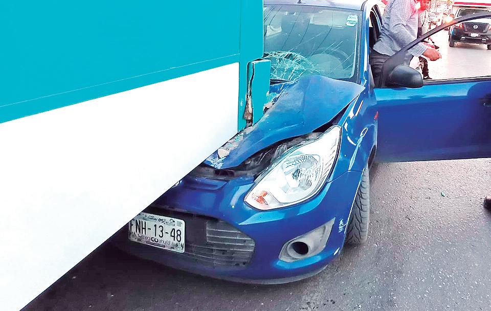 Un conductor identificado como Armando Chagoya terminó bajo la parte trasera de un camión urbano de la Ruta 5 al no respetar su distancia reglamentaria y chocar con su auto Ford en la defensa del transporte. Elementos de Tránsito y Vialidad Municipal tomaron conocimiento de un accidente automovilístico registrado sobre la avenida Láza-