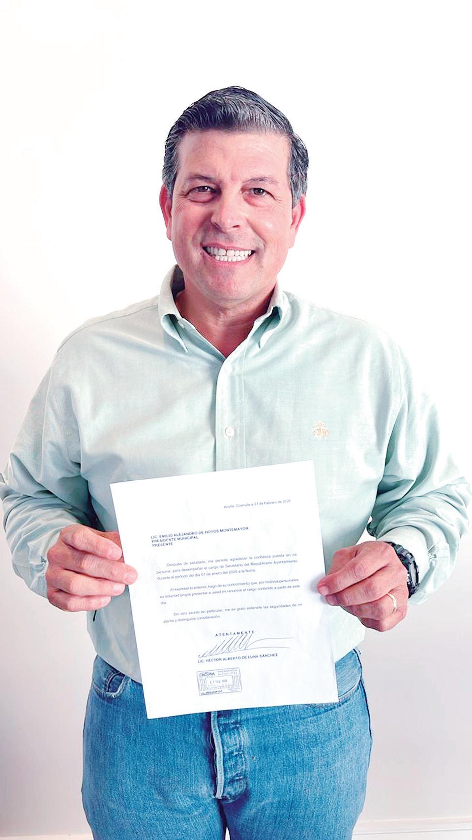 Con la posibilidad de participar en el próximo proceso electoral, el secretario del Ayuntamiento, Alberto de Luna, presentó ayer su renuncia. Ante esto, el alcalde Emilio de Hoyos Montemayor dio a conocer que se suma a las solicitudes de dos regidores que también buscarán contender en la elección.