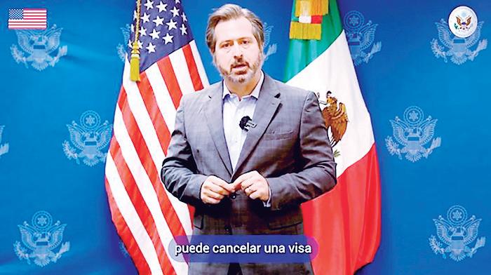 z El vocero de la representación diplomática de la embajada estadounidense en México, David Arizmendi, explicó que el Departamento de Estado revisa de manera constante las visas otorgadas y puede anularlas en cualquier momento sin una sentencia, siempre y cuando existan señales de riesgo o violaciones a su reglamentación.