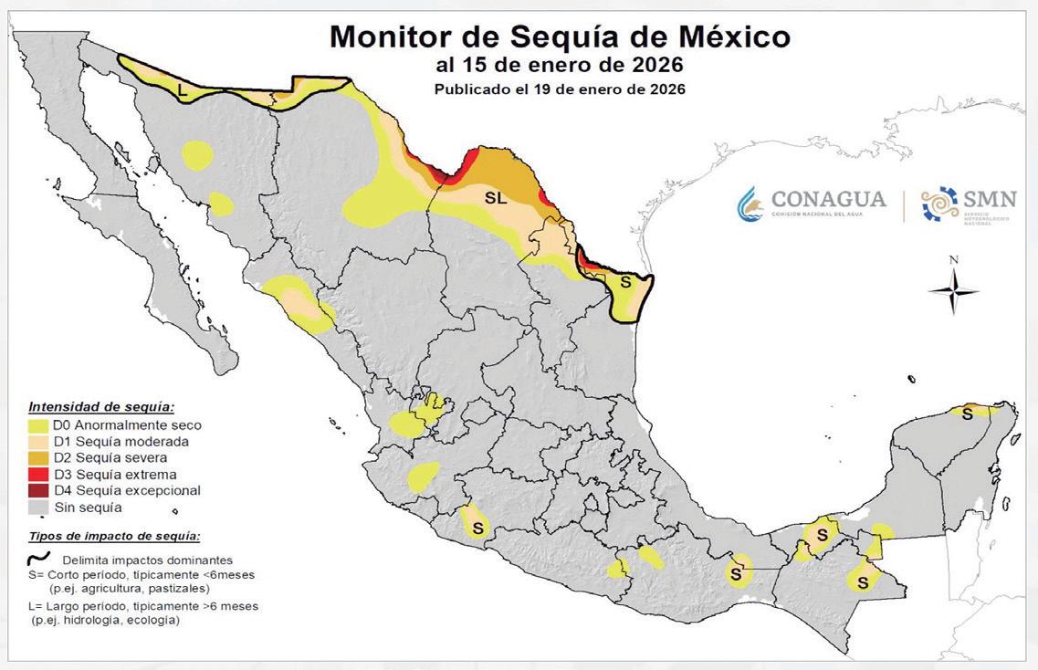 REDACCIÓN Zócalo | Piedras Negras Sin importar que el Monitor de Sequía de la Comisión Nacional del Agua señaló que México registra la menor cantidad de sequía en su territorio en los últimos seis años, las mediciones alertan que Coahuila es la entidad que más estragos sufre por la falta de lluvias y de humedad, puesto que esas condiciones afectan a más del 51% de su extensión territorial. Con corte al 15 de enero o la primera quincena del año, los análisis del Servicio Meteorológico Nacional alertan que sólo 7.4% del territorio padecía de insuficiencia de lluvias, en contraste con la misma fecha del año pasado, cuando se alertaba que 40% del país experimentaba alguna condición