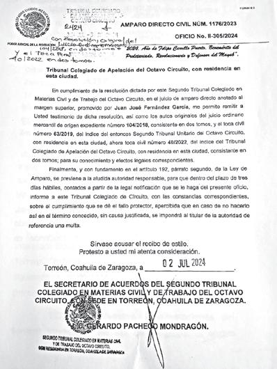 Segundo amparo solicitado por la exalcaldesa de Múzquiz. z 27 de mayo