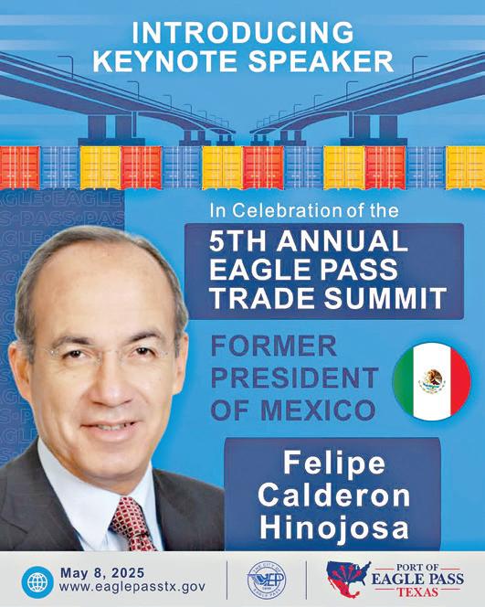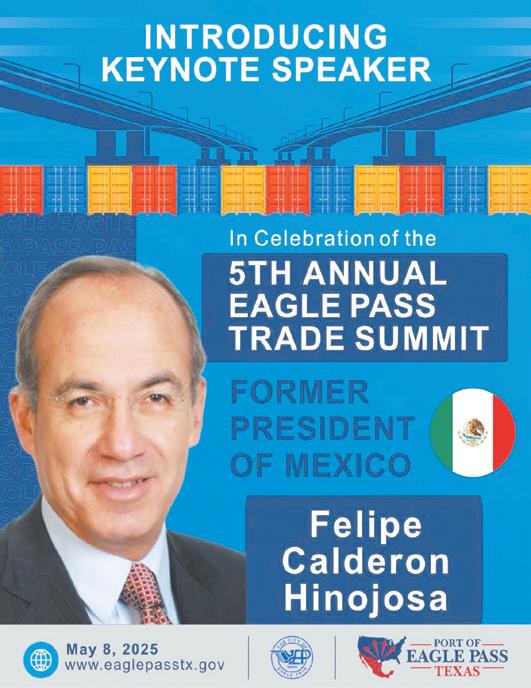 El expresidente de México, Felipe Calderón Hinojosa participará como orador principal en la Quinta Cumbre Comercial anual que se celebrará en la ciudad de Eagle Pass, el próximo martes 8 de mayo.