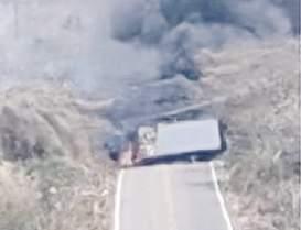 Se solicitó el apoyo de Del Río Towing para llevar a cabo el retiro de esta unidad del lugar delos hechos para poder reabrir el camino; tuvieron que utilizar vehículos de carga y una enorme grúa.
