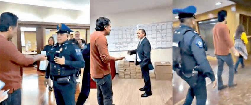 En las imágenes se observa como Marx Arriaga se dirige a un policía, a quien reta a esposarlo, diciendo, “quieren esposar a quien hizo los Libros de Texto Gratuito, adelante”. Y remató acusando al secretario Mario Delgado de co-