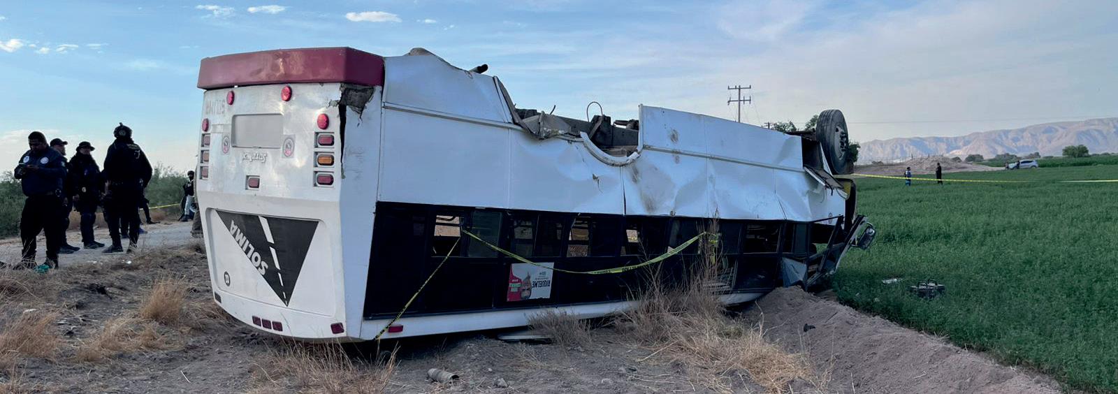 z Un niño de 7 años pereció en la volcadura del autobús en ejido de La Laguna; hay por lo menos cuatro lesionados más.