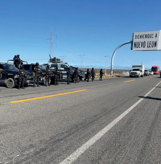 Nuevo León por los municipios de Castaños y Candela. Ahí elementos municipales se sumaron al operativo. En Piedras Negras, el foco estuvo fue puesto en la Ribereña que conecta a los estados de Coahuila, Nuevo León y Tamaulipas, una de las entidades donde el crimen dio una respuesta extremadamente violenta mediante bloqueos e incendios de vehículos y de negocios.