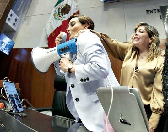 “Ferrer, corrupto. Ya vas a correr”, le gritó megáfono en mano al extitular del extinto Instituto de Salud para el Bienestar (Insabi). Ferrer acudió ayer al Senado para asumir su nuevo cargo, junto con otras 11 personas que encabezarán 10 consulados y la Embajada en Jamaica. Téllez subió a la mesa desde donde se conducía el evento y, a los pocos segundos, la pez “Morena no me va a callar, ¡hay que denunciar a los corruptos!”, publicó la senadora en sus redes sociales. tista Lilia Aguilar Gil intentó arrebatarle el megáfono, pero no lo logró. Durante la discusión del dictamen, Téllez dijo que Ferrer “debe pisar la cárcel” por sus actos de corrupción durante la pandemia de Covid-19.