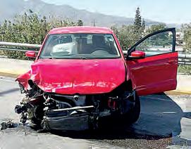 igual que las cortinas de acero que sirven como protección. El automóvil, por su parte, terminó completamente inservible. A pesar de la magnitud del accidente, las dos ocupantes lograron salvar la vida. Fueron atendidas en el lugar por paramédicos del Grupo de Rescate y Urgencias Médicas (GRUM), al igual que paramé-