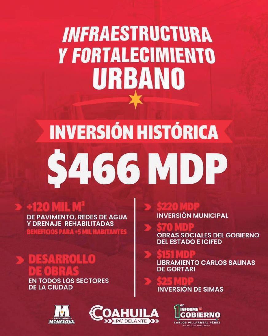 El Alcalde de Monclova destacó que, en sólo once meses la inversión pública, municipal y estatal en la ciudad, ha superado los 440 millones de pesos, marcando un cambio de actitud en la forma de gestionar la administración.