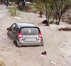 La corriente arrastró a varios vehículos que estaban estacionados.