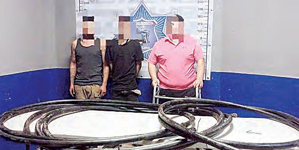 La tarde del martes, tres personas, incluido un oficial de Policía que se encuentra incapacitado, fueron detenidas mientras sustraían cableado de Telmex de una alcantarilla en la calle Cuauhtémoc de la colonia El Pueblo.