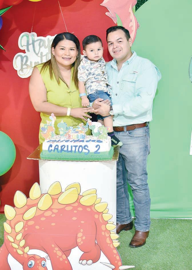 El pequeño Carlos Alonso Lara Hernández cumplió dos añitos y lo celebró con una divertida fiesta de Dinosaurios, en donde sus papás, Carlos Lara y Michelle Hernández, estuvie-