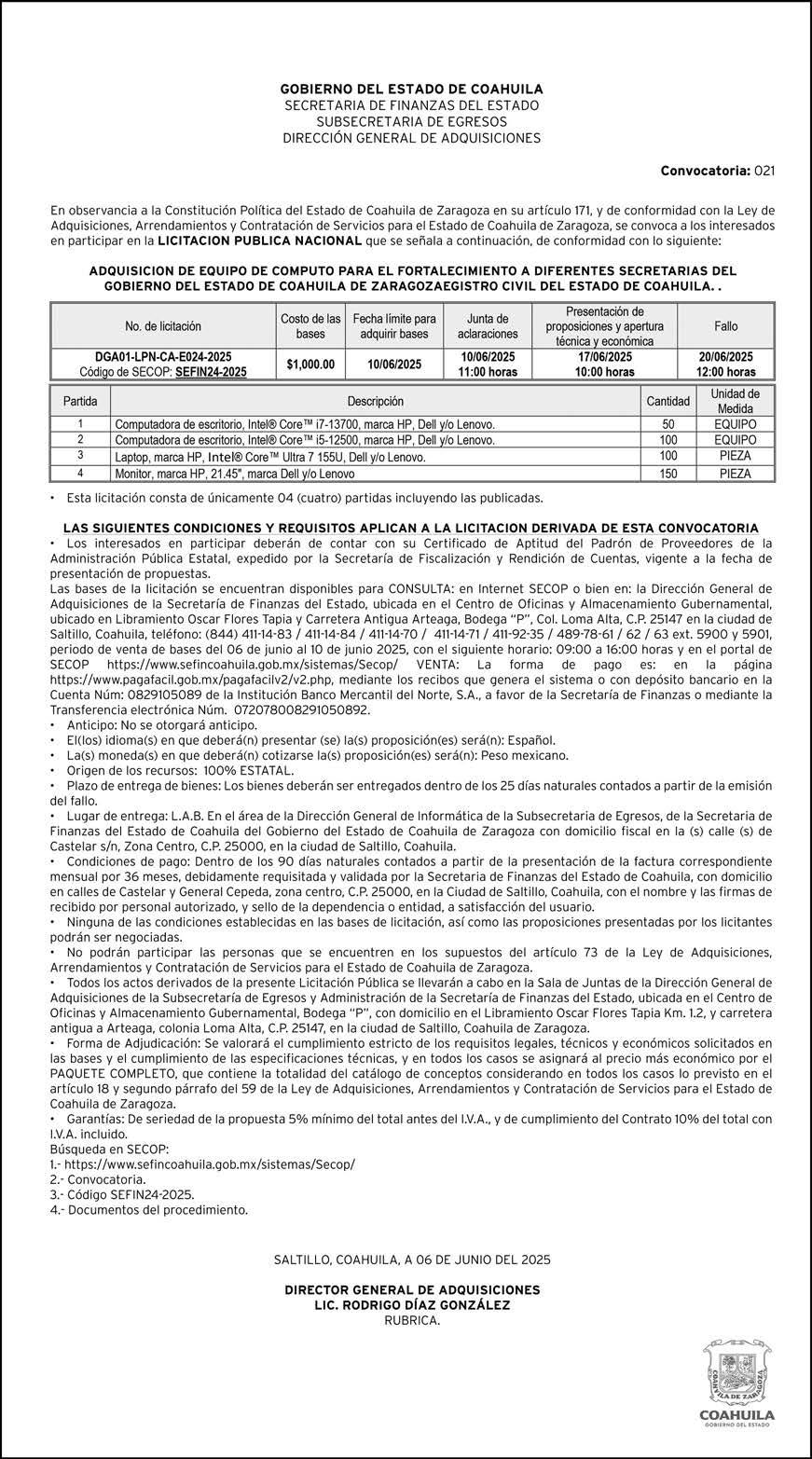 ductiva coahuilense resienta el menor impacto posible. “Afortunadamente, el efecto no ha sido tan severo como se llegó a prever inicialmente, donde se temía la salida de empresas del país e incluso de Coahuila”, afirmó el secretario. Atribuyó esta resiliencia a la responsabilidad y preparación de las empresas al adaptarse a las nuevas condiciones arancelarias. Hasta la fecha, ninguna empresa en Coahuila ha reportado su decisión de abandonar el estado a causa de estas medidas, lo que refleja la fortaleza y adaptabilidad del sector productivo local. El secretario Olivares Martínez también destacó que las tarifas arancelarias impuestas por Estados Unidos no se limitan únicamente a México, sino que han afectado a diversas naciones. Esta situación, paradójicamente, podría transformarse en una oportunidad para Coahuila. Es indispensable que las autoridades federales refuercen sus procesos para garantizar que las clínicas y hospitales del ISSSTE cuenten con un suministro constante y oportuno de medicamentos”.