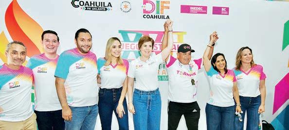 tarán participando, dentro de las disciplinas de Atletismo, Beisbol, Cachibol, Pelota Tarasca, Basquetbol, Lanzamiento de Bala, Ajedrez, Natación, Dominó, Ulama de Antebrazo y Tal Chi Chuan, mientras que en los eventos culturales tendrán participación dentro de Manualidades, Artesanías y Canto individual. Dando paso a la toma de protesta a todos los deportistas que estuvo a cargo de Elva Ortiz Mata, mientras que la toma de protesta para los jueces de campo estuvo a cargo de Josué García; la declaratoria inaugural la realizó Liliana Salinas Valdés, presidenta honoraria del DIF Coahuila, dando paso a una presentación artística en la que hicieron alusión a la competencia y la lucha por el triunfo en este campeonato estatal, finalizando con el encendido del pebetero que estuvo a cargo