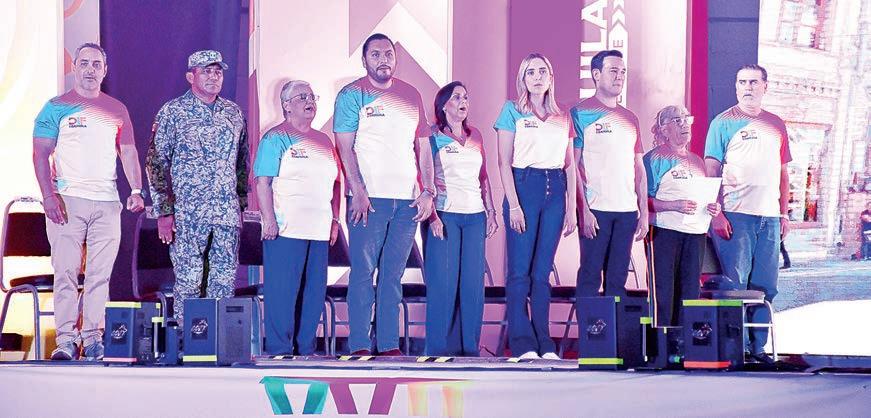 estuvo presente el teniente coronel de Infantería, Jorge Luis Cigarroa; Alejandro Cepeda, director general del DIF Coahuila y Antonio Cepeda Licón, director del Instituto Estatal del Deporte en Coahuila. Como acto seguido, presentaron a las delegaciones de los 38 municipios que es-