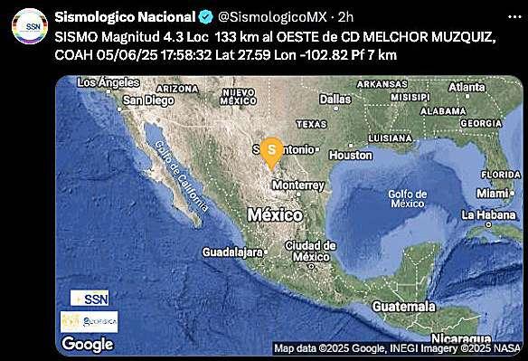 De acuerdo a las autoridades fue en el mismo lugar, en el municipio de Múzquiz y cada quien tiene su versión sobre las causas de esos movimientos telúricos.