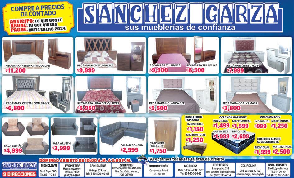 Sábado 8 de julio de 2023 | Año XXIV | Número 9039 | 6 secciones | www.zocalo.com.mx 10 PESOS @PeriodicoZocalo Periodico Zócalo zocalomonclova El clima en la región Hoy MÁX 35° MIN 25° ARRANCA LA FERIA DE SAN BUENAVENTURA n Local 10A Construyen área de resguardo Reconoce MARS labor de Centro de Identificación n Nacional 2C