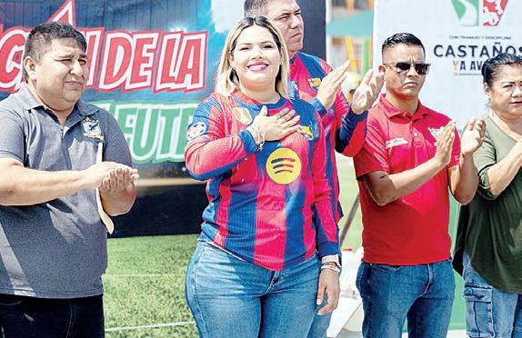 bandera con la escolta de elementos de Seguridad Pública, dando paso a los invitados de honor encabezados por la alcaldesa Yesica Sifuentes, que estuvo acompañada por su esposo Amaro Cepeda. Así como también estuvieron presentes integrantes del Cabildo, además del director de Deportes, Ángel Díaz; Aldo Véliz asistió en representación de Programas Estatales; Jesús Martínez, del Colegio de Árbitros y Omar Juárez, presidente de la Liga Municipal de Cas-