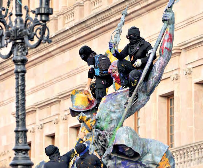 festaron y elementos de Seguridad Pública, sobre todo en la plancha del Zócalo, frente a la Catedral Metropolitana. En Guadalajara hubo un altercado entre feligreses que hicieron una valla humana para proteger al Templo del Carmen y las manifestantes, quienes les lanzaron agua y botellas. En Monterrey, feministas realizaron quemas y provocaron explosiones frente al Palacio de Gobierno.