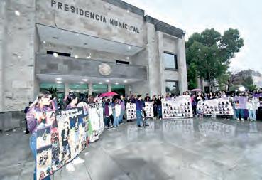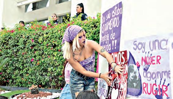 frente a algunos contingentes, particularmente aquellos integrados por colectivas proaborto, víctimas y sobrevivientes de violencia vicaria, mujeres trans y grupos interseccionales. El bloque transincluyente rechazó su presencia. Una mujer encapuchada gritó que se violó el derecho a la libre manifestación. Si las autoridades se colocan detrás, dicen algunas manifestantes, encapsulan la marcha; si se colocan delan-