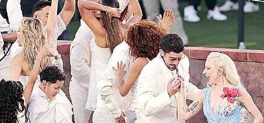 la cabeza, atrajo a más de 6.1 millones de espectadores simultáneos en YouTube, compitiendo durante la misma franja horaria. Asimismo, tras su actuación, la estrella puertorriqueña experimentó un aumento significativo en las reproducciones en Spotify, con un incremento del 470 por ciento en Estados Unidos y del 210 por ciento a nivel mundial. Hasta este lunes por la mañana, Bad Bunny también ocupaba los 6 primeros puestos de la lista diaria de las mejores canciones de Spotify en EU. Ricky Martin, uno de sus invitados, también está experimentando un aumento significativo del 145 por ciento en EU.