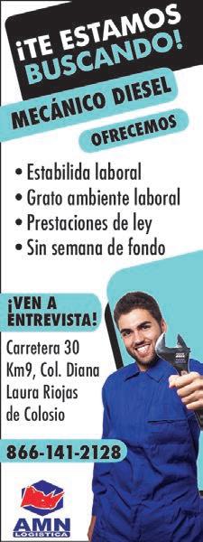 EMPRESA IMPORTANTE SOLICITA OPERADORES, MANDRILADORSISTA MANUAL Y CNC (CON EXPERIENCIA) PINTORES INDUSTRIALES Y MECANICO INDUSTRIAL. INTERESADOS FAVOR DE COMUNICARSE TEL. (866)636-77-73, (866)636-77-74. (59050 : 25-Sep : 10-Oct)