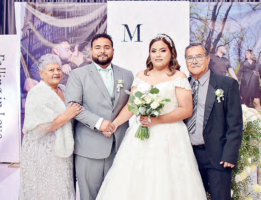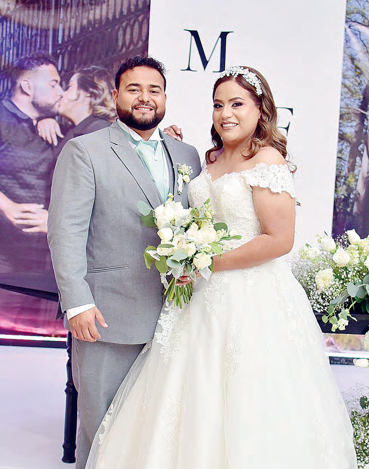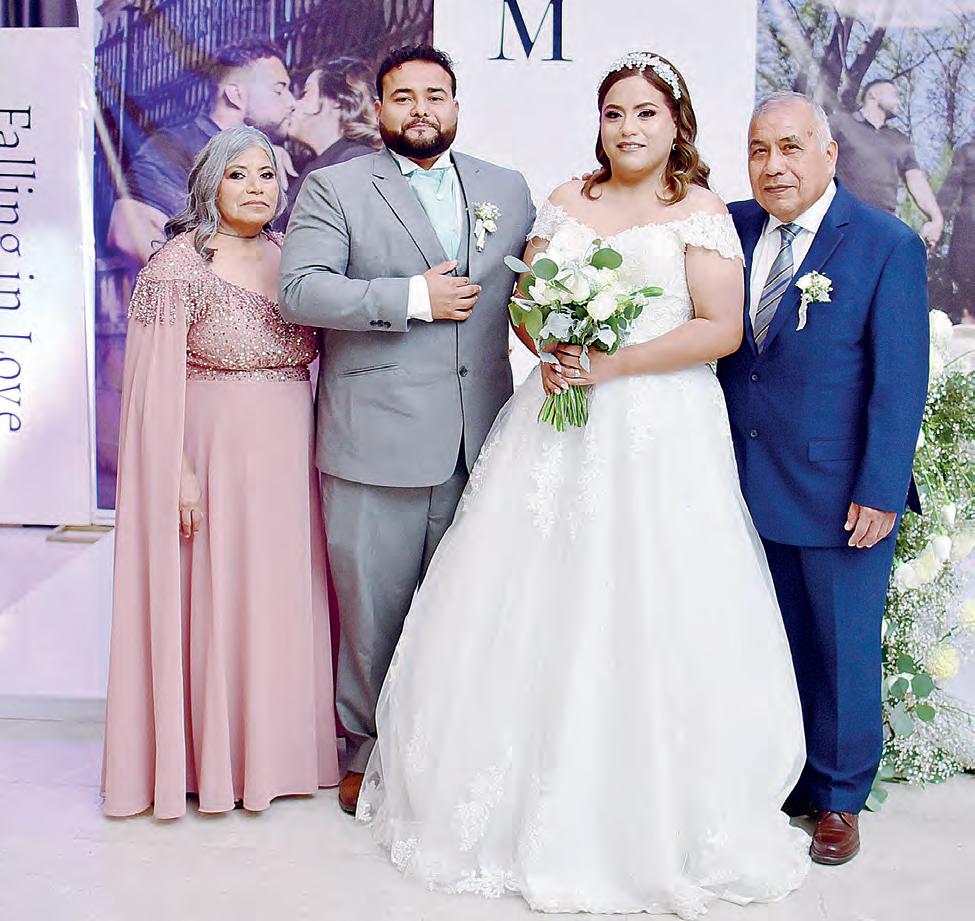 como de los padres de ambos, quienes fueron los primeros en colmarlos de bendiciones por la etapa que están por iniciar. Al terminar la ceremonia religiosa, se llevó a cabo un hermoso festejo en un salón de la ciudad, hasta donde llegaron familiares y amistades que los llenaron de felicitaciones augurándoles una larga vida juntos como marido y mujer.