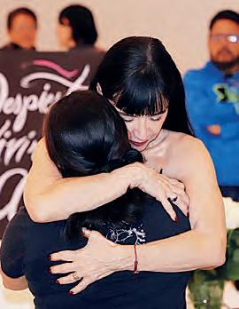 estruendosos. La emoción se manifiesta en silencio: en miradas, respiraciones profundas y la contención de quienes están a punto de vivir un momento cercano con una de sus actrices favoritas. Uno a uno, los asistentes pasan a los brazos de Zabaleta. Ella no apresura el encuentro. Permite que cada persona decida cuánto tiempo permanecer ahí. La mayoría opta por no más de un minuto, suficiente para una conversación sin palabras, sostenida únicamente por el contacto. Entre los asistentes se encuentran Araceli y Gabriela. Antes de acercarse, los nervios son evidentes; después del abrazo, algo cambia. “Es muy bonito, ella tiene una vibra especial que te da calma”, comparte Araceli al terminar su turno.