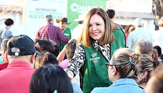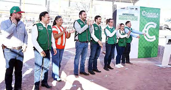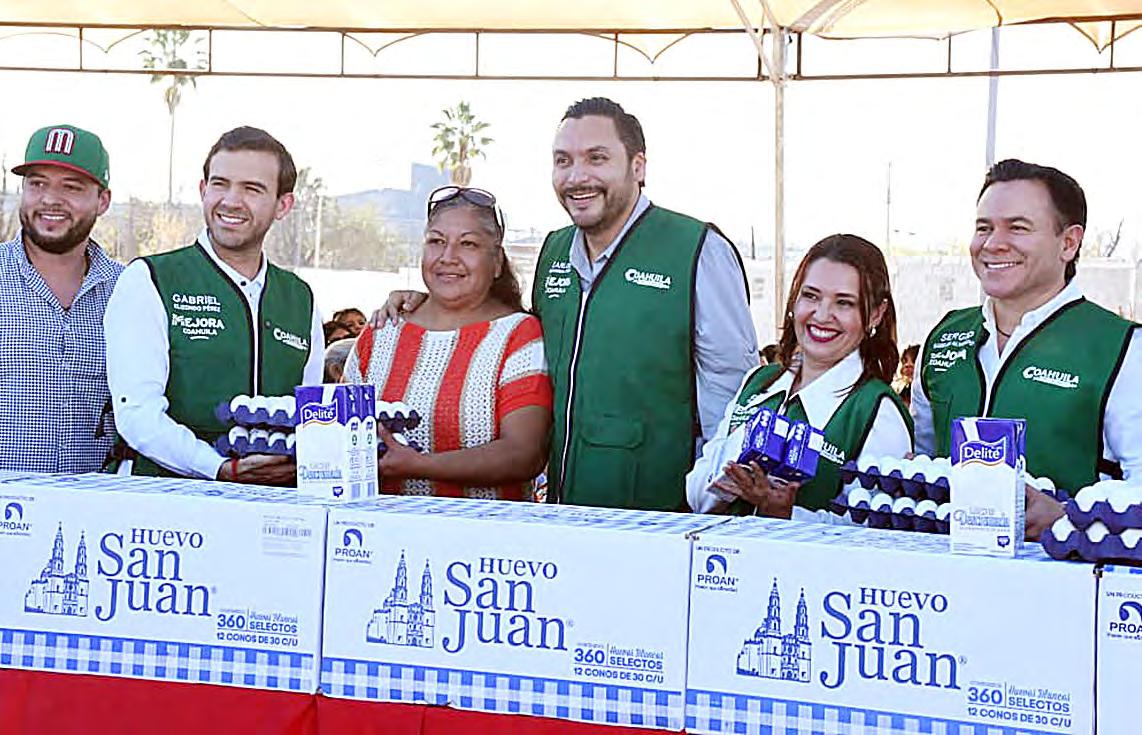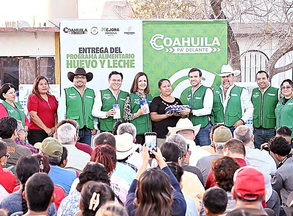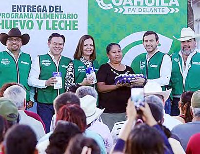 Y después se fue a Ciudad Frontera y con Sara Irma Pérez también entregaron leche y huevo en un evento en la colonia Occidental.
