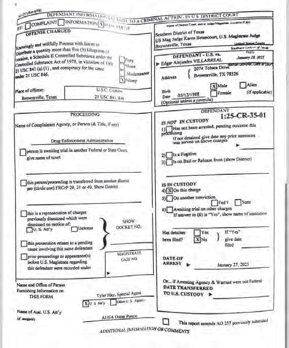 Apenas el 21 de enero fue detenido en el mismo puerto fronterizo Édgar Alejandro Villarreal Guajardo, “La Fresa”, en posesión de 8 kilos 800 gramos de cocaína, y según la DEA era la tercera vez en sus registros.