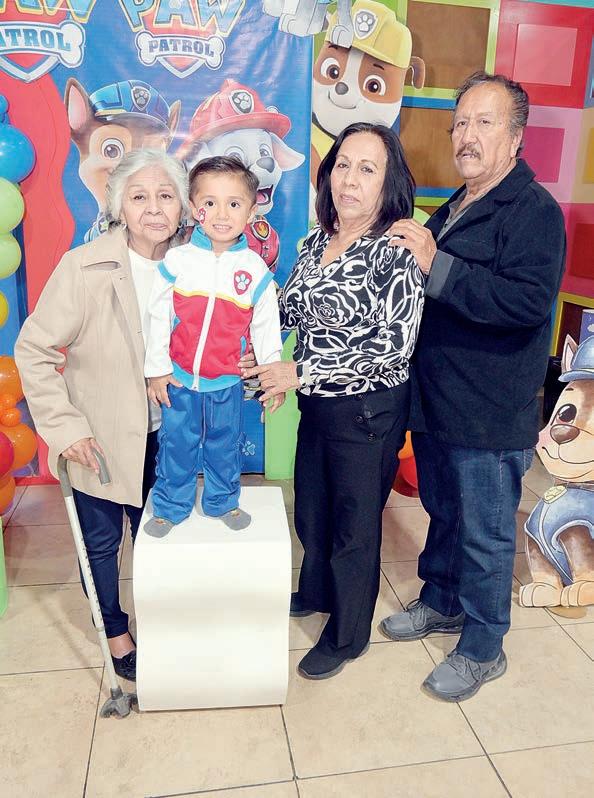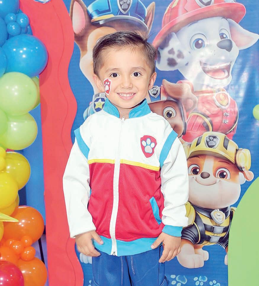 ron todos los detalles. Reconocido salón para fiestas infantiles fue el escenario de la celebración con temática de Paw Patrol. Los niños que lo acompañaron fueron los más felices, quebraron la piñata, disfrutaron de los juegos y recibieron una bolsita con dulces. Entre los presentes vimos a sus abuelos Juan de Dios Quintero, Dora Elia Limón, Rosalío Pecina y Martha Cuadros.