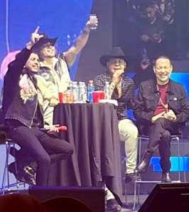 El buen ambiente siguió con “Mi Último Deseo” y “Costumbres” de Juan Gabriel, ya cuando algunos de ellos andaban alegres. La velada se extendió pasada la medianoche con un público que no dejó de cantar en las tres horas de show.