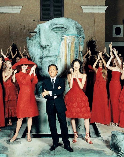 “No me gusta la gente que exhibe sus gustos sexuales. Me horroriza ver a dos hombres besarse en la calle. Giancarlo y yo nunca nos hemos tocado una mano en público. Es una cuestión de estilo”, decía. Despedida de la moda duró tres días Fue una fiesta faraónica, el evento más glamoroso jamás diseñado en el mundo de la moda. Fueron invitados príncipes, divas de Hollywood, princesas y jefes de Estado. En Roma, el 45 aniversario de Valentino es recordado aún como tres días de fiestas suntuosas, que incluyeron una retrospectiva de vestidos de archivo en el Ara Pacis, un desfile de alta costura en el complejo de S. Spirito in Sassia, una gala entre las columnas del Templo de Venus, nunca concedido, con el Coliseo de fondo y el premio Oscar Dante Ferretti a cargo de la escenografía.