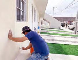 A marchas forzadas se trabaja para tener listas las 60 casas del programa Viviendas para el Bienestar que la presidenta Claudia Sheinbaum entregará el sábado en la colonia Colinas de Santiago; ayer todavía se estaban pintando algunas y en otras se colocaban mufas de instalación eléctrica. (Juan Ramón Garza) n Página 2A