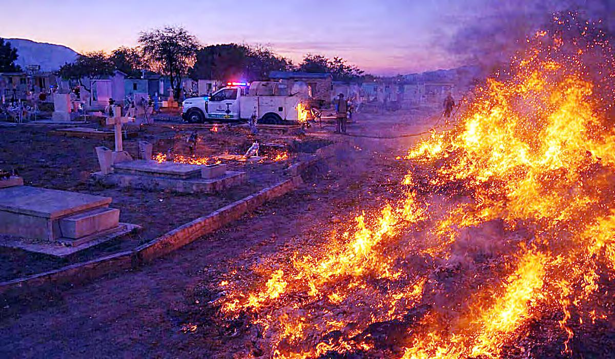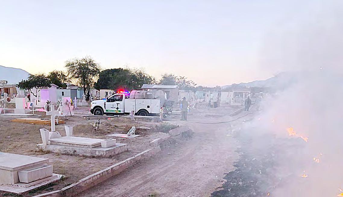 Un voraz incendio registrado durante el amanecer, movilizó a los cuerpos de emergencia en el panteón Guadalupe, donde las llamas consumieron gran parte de la maleza acumulada en el camposanto. Pedro Alvarado, de Protección Civil, aseguró que no se puede descartar el vandalismo como posible causa del incendio.