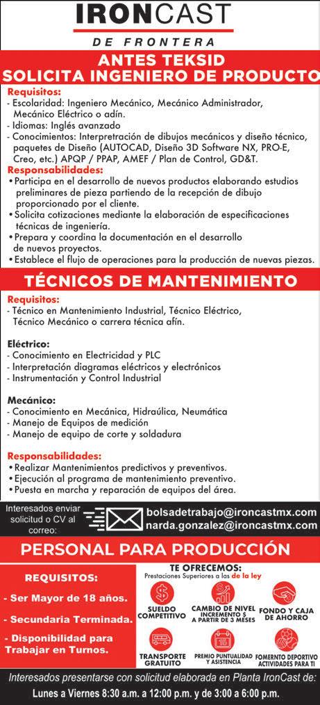 Solicito oficial albañil y ayudantes de albañil, para trabajar dentro de Tecksid. Infomres tel. 866-633-8209 (58362 : 20-Jul : 28-Jul)