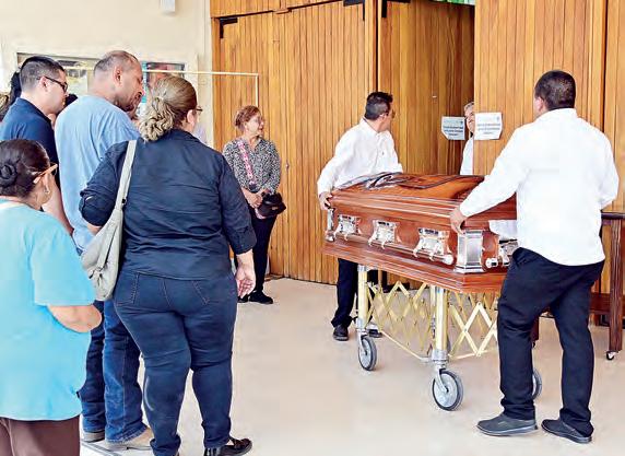 de velocidad. En tanto, Rodolfo Martínez Leal, el contratista que falleció al caer en un depósito de grasa y desechos de un restaurante ubicado en el bulevar Pape la noche del viernes, fue velado en una capilla de la colonia El Pueblo, donde se le recordó como un hombre trabajador y entregado a su familia. Y en Castaños, el cuerpo de la maestra Zyhui Janeth Reséndiz Cázares, quien se quitó la vida también el pasado viernes, fue llevado a una misa a la parroquia de Nuestra Señora del Buen Suceso. Sus seres queridos, estudiantes y compañeros docentes, realizaron una procesión junto a sus restos desde la capilla donde fue velada hasta el templo católico; mientras que su cristiana sepultura se realizó en el Panteón del Carmen.