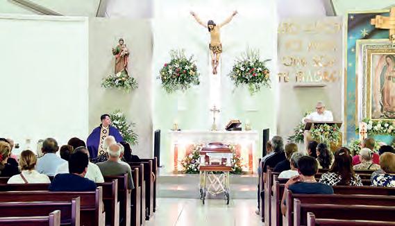 Familiares y amigos de ‘Doña Lupe’, conocida vendedora de tacos de la plaza de la colonia Primero de Mayo, acudieron al Santuario de Guadalupe a la misa de cuerpo presente, previo a su sepultura.